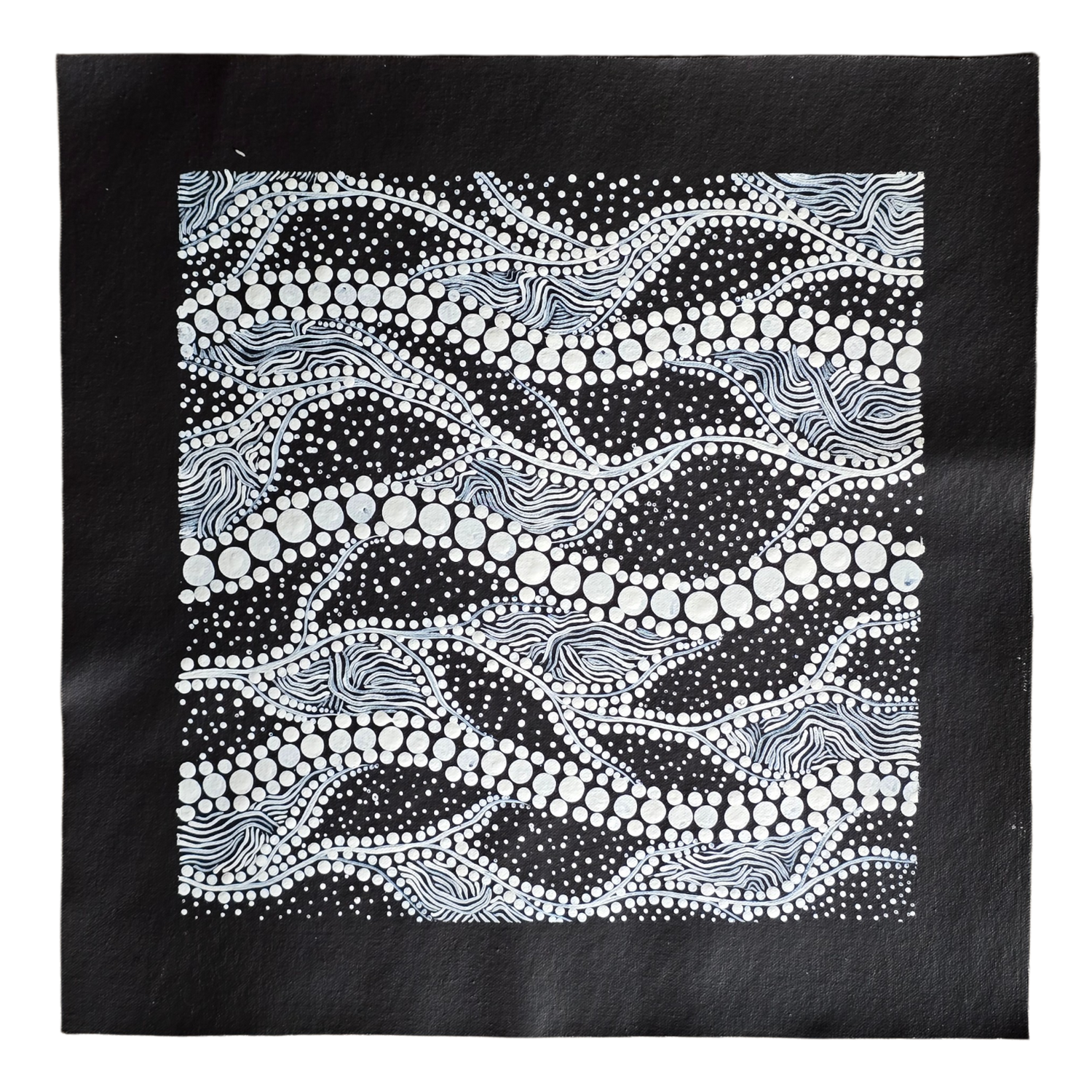 Story Spirits in the wind is definitely one of the favourite designs to paint and resonates deeply. Mobs around Australia have strong spiritual belief systems of their own, but its also common to see the strong winds as the old spirits communicating and connecting with us.